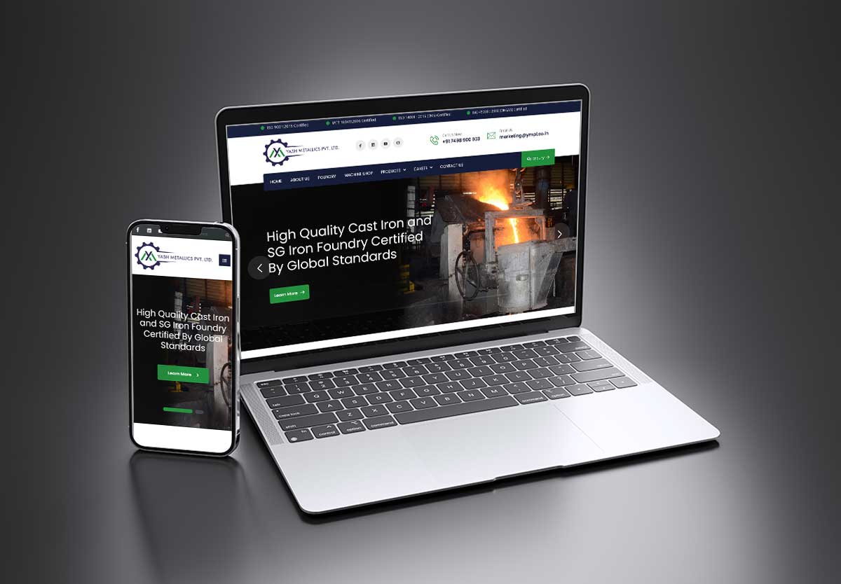 Agnis Designers developed an SEO-optimized and mobile-friendly website for Yash Metallics Pvt. Ltd., a leading manufacturer of high-quality castings and machined components based in Kolhapur, Maharashtra.